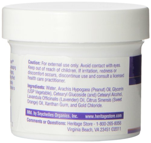 Product Description Heritage store gold cream has a rich, creamy texture that easily absorbs into thirsty skin with a delightful lavender/citrus fragrance! 0
