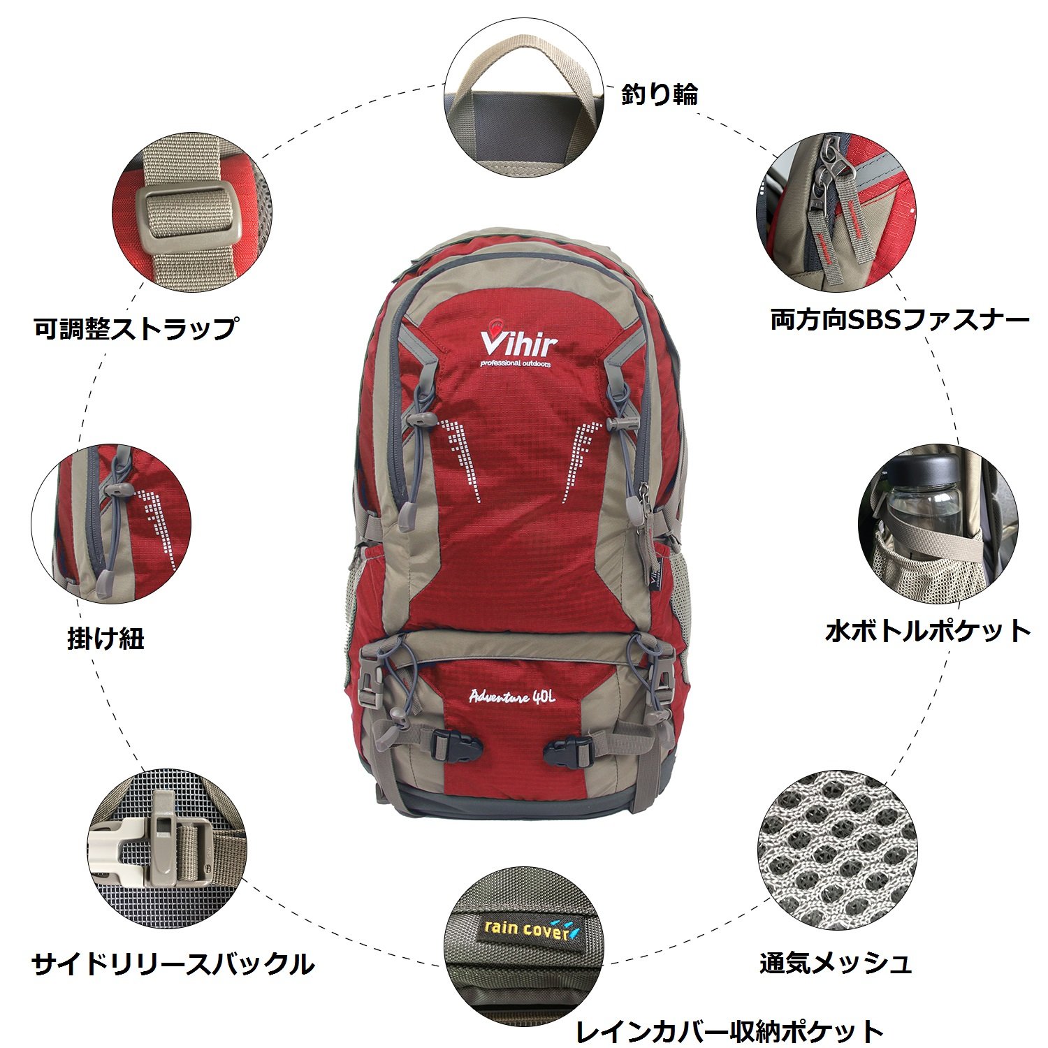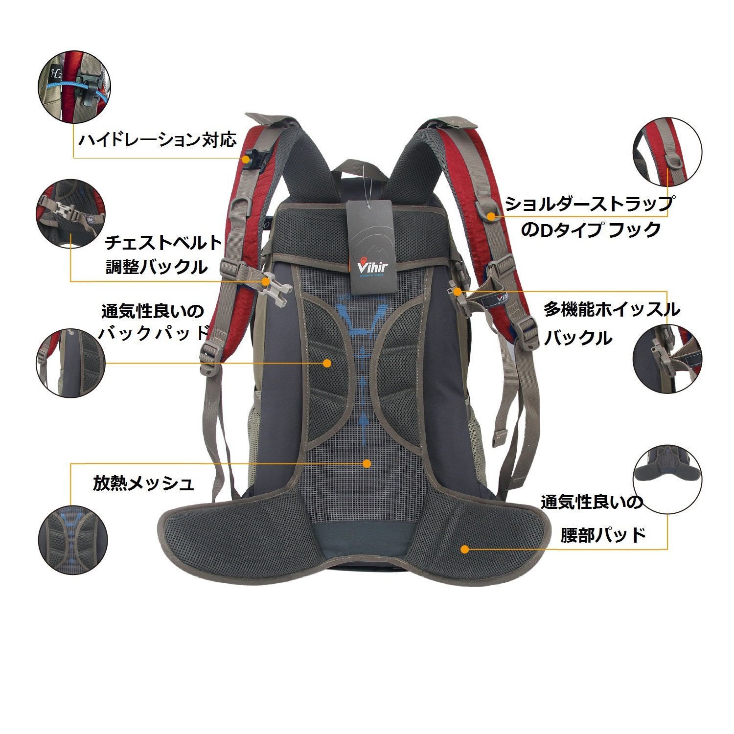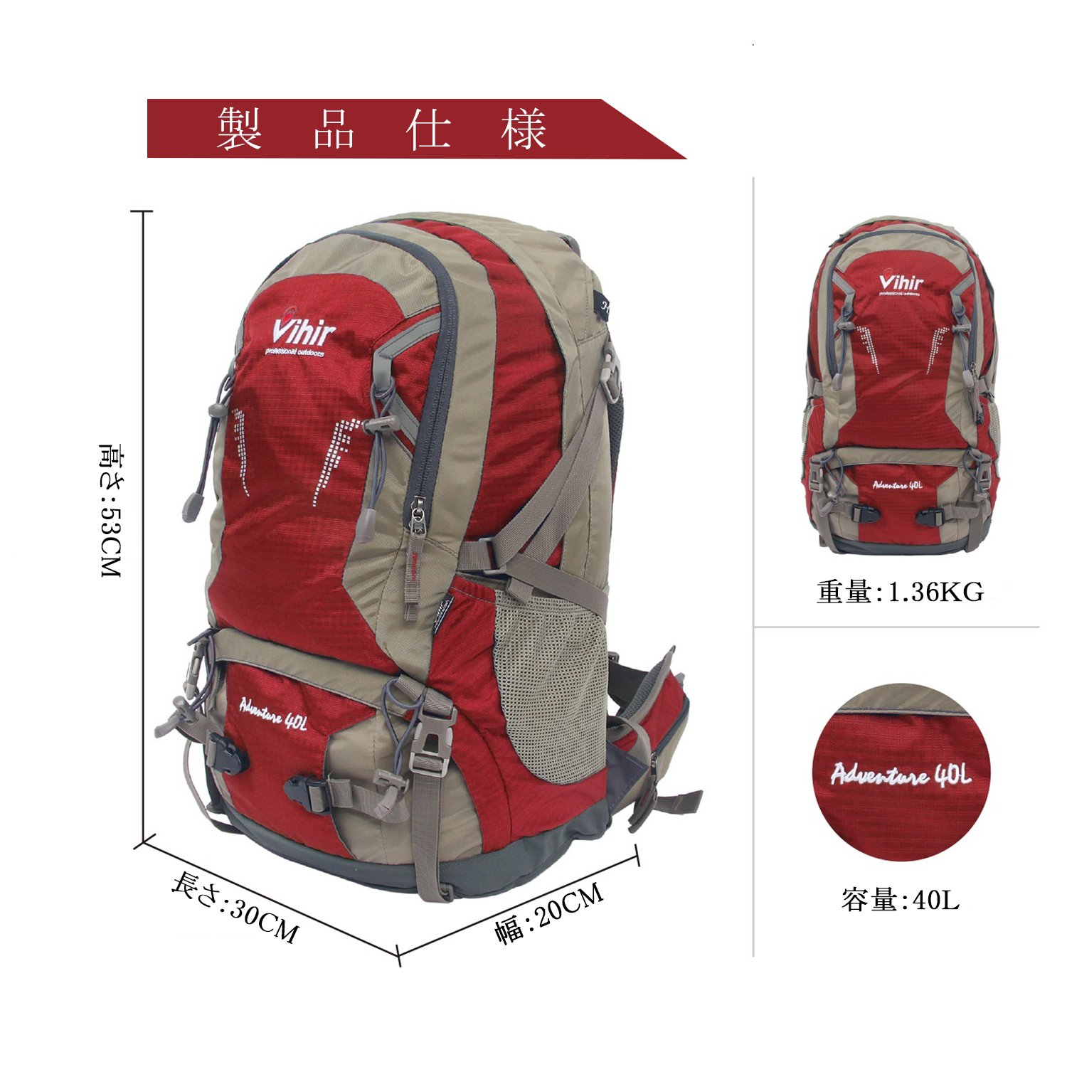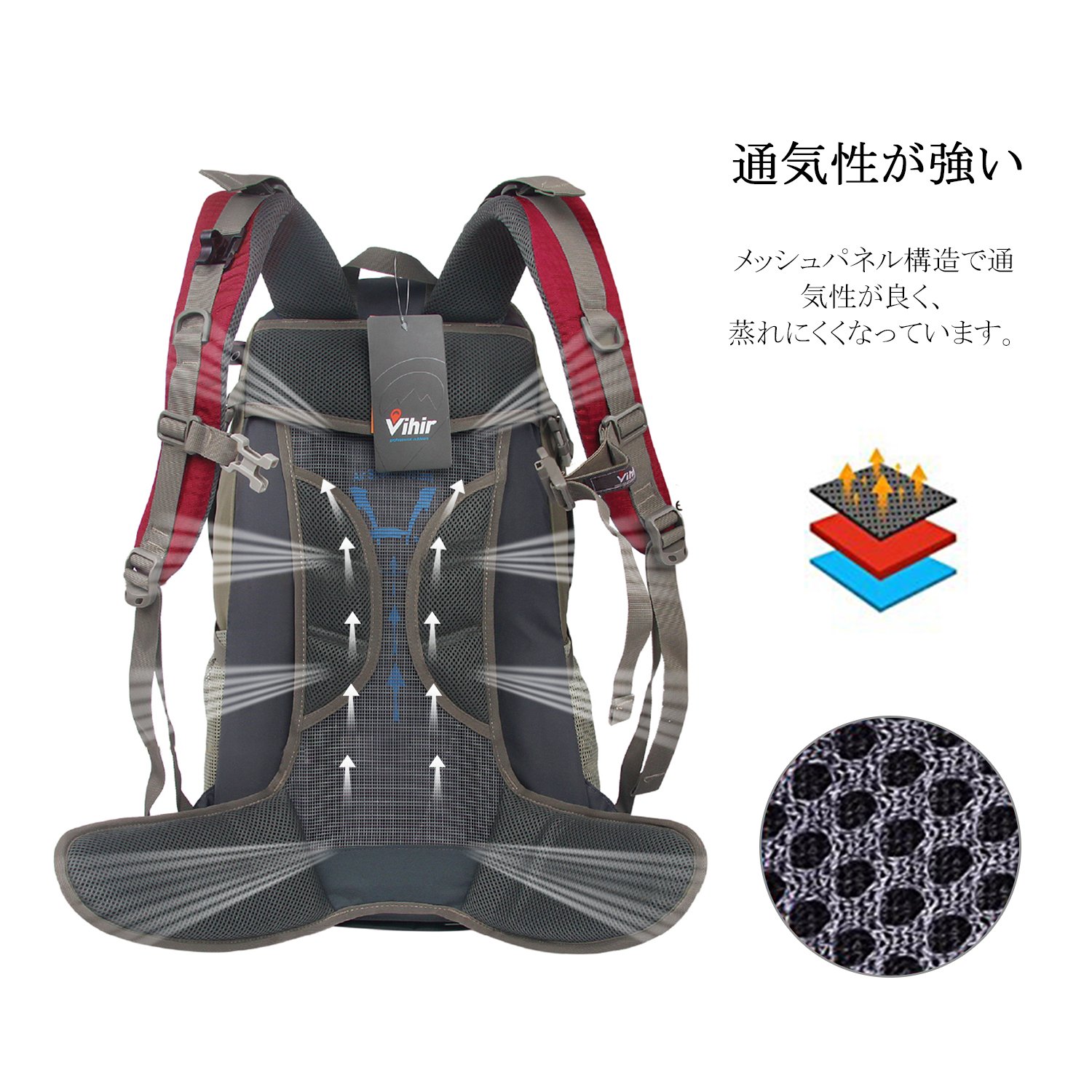 Vihir climbing rucksack outdoor backpack 40L large capacity lightweight waterproof highly breathable rain cover with multi function unisex