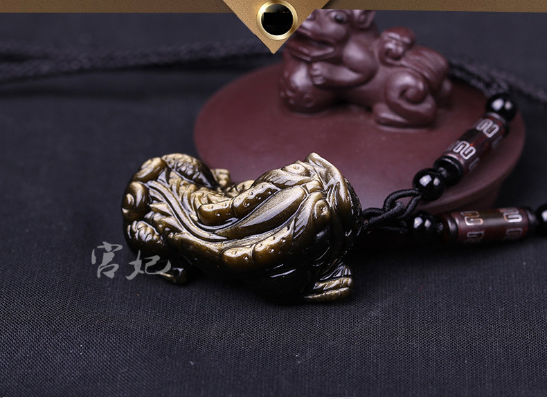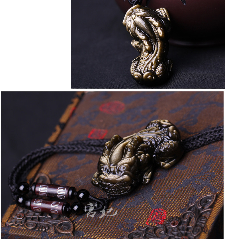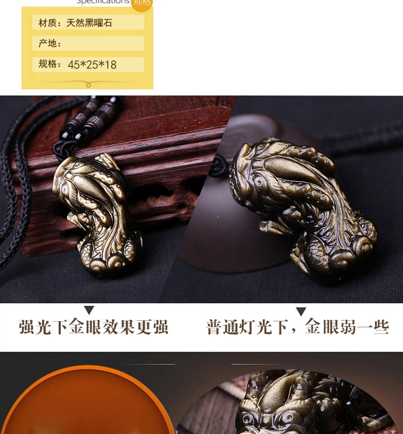 开光天然金曜石貔貅吊坠男士项链 双金眼 飞天兴财貔貅吊坠