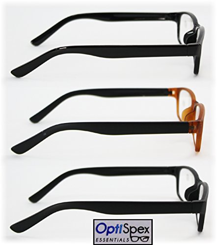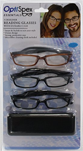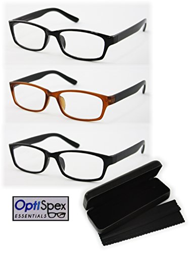 -. Title : OptiSpex Unisex Plastic Reading Glasses (1.5x) Black, Matte Black & Brown/Black 3 Pack with Protective Case & Microfiber Cleaning Cloth