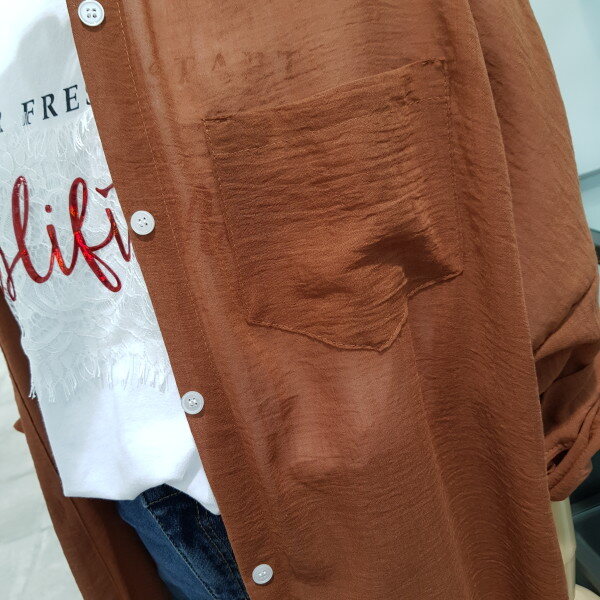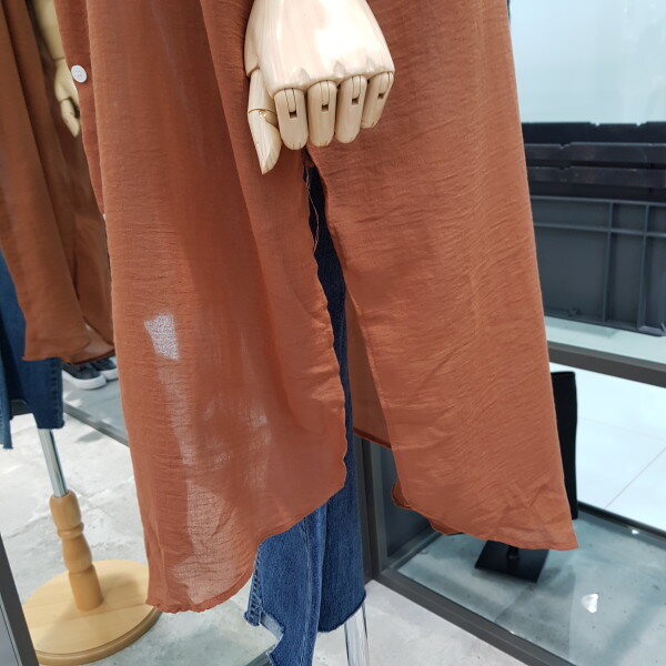반에이크 롱셔츠 입니다^^원단이 굉장히 가볍고 색감이 가을느낌이 많이 나는 상품 입니다^^겉옷으로 착용도 가능하고 두꺼운 아우터안에 레이어드용 셔츠 코디도 가능한 상품입니다^^표준사이즈FREE가슴둘레 88CM엉덩이둘레 94CM신장 165CM실측사이즈라글란단면 67CM뒷기장 116CM앞기장 102cm실측사이즈는 재는 위치에 따라1-2CM정도 차이가 날수 있으니 참고바랍니다^^