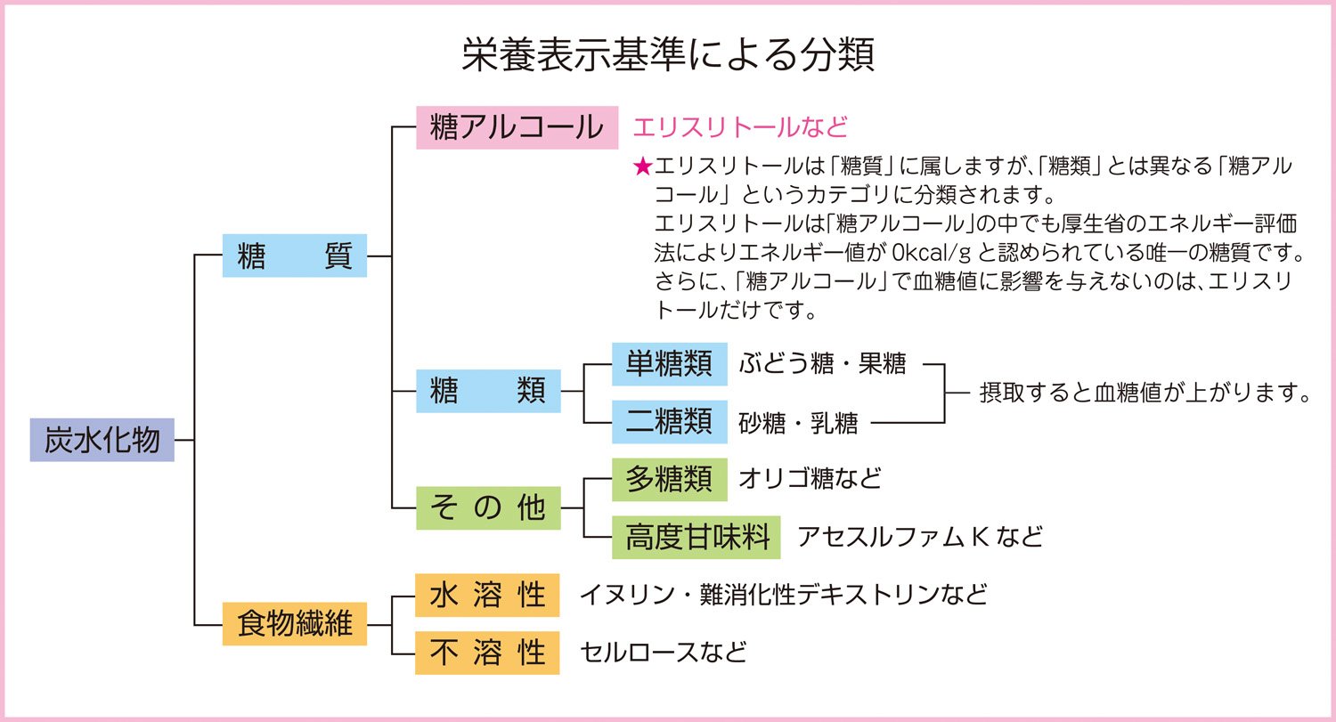 In classification according to nutrient standards, "carbohydrate" or "carbohydrate" is expressed as 100 g, but since it is all "sugar alcohol", "sugar" is not included.
