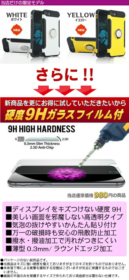 ★人気のリング付きケースに新色イエロー&ホワイトが登場!360度回転式のリングが付いて、iPhoneを快適操作!落下防止&スタンド機能などなど便利な機能が満載。ガラスフィルムが特典として付属するので、360度保護ケースの完成★■対応機種iPhoneSE/5S5iPhone6S/6iPhone6Plus/6S PlusiPhone7/8iPhone7Plus/8PlusiPhoneX/XSiPhoneXRiPhoneXS Max