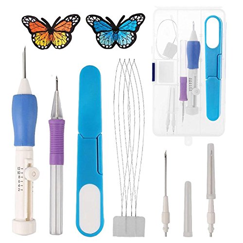- 【PACKAGE CONTENT】Embroidery kit provides the dedicated needles and two butterfly shaped embroidered patterns. Come with 1 adjustable punch needles, 3 different size needles, 1 yarn shear, 4 threaders inside the box . All embroidery pens package comes with a plastic box for easy collection and can be stored well.