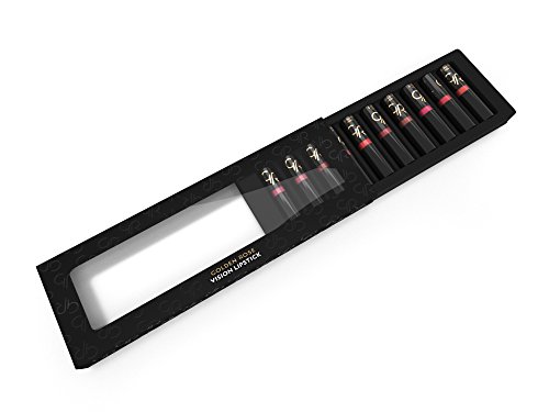 Our creamiest lipstick in a 10 piece gift set. Your lipstick shouldn't dry your lips. Vision Lipstick gives your lips the nourishment they deserve with infused moisturizing ingredients, including shea butter, jojoba oil, and vitamin E. This long lasting lipstick delivers an optimum combination of a creamy and glossy finish on your lips. Vision glides on smooth without skipping or jumping on your lips. And this lightweight lipstick won't feel gunky and sticky on your lips. Each lipstick case displays the color inside. No more guessing which color you're grabbing! Now you can reap all the benefits of Vision Lipstick in a 10 piece boxed gift set. Vision Lipstick is dermatologically tested for your safety and never tested on animals.
