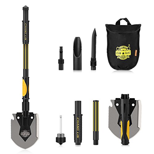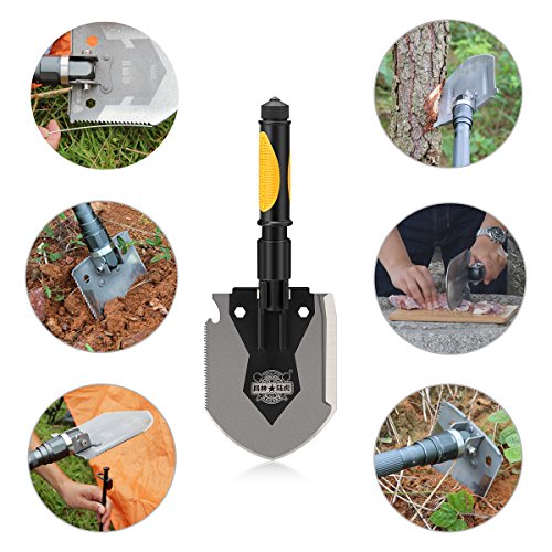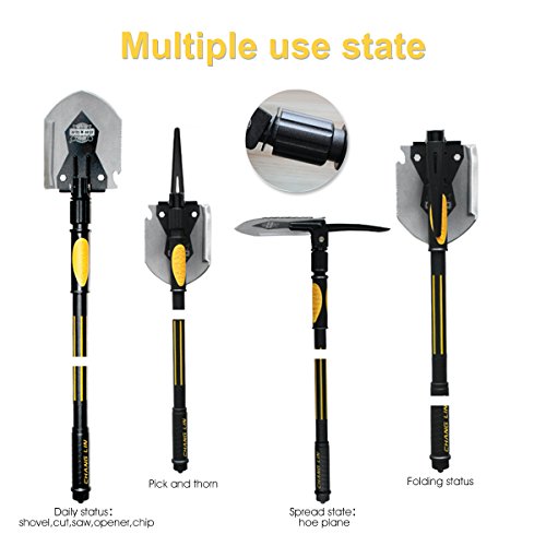 MULTI-FUNCTION: Emergency hammer, shovel, hoe, screwdriver (straight screwdriver, cross screwdriver ), knife, fish phosphorus knife, pick, ice pick, bottle opener, saw, whistle, chopper, hexagon wrench, all-in-one. The must-haves for surviving in the outdoors.