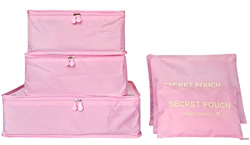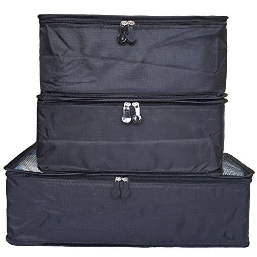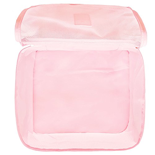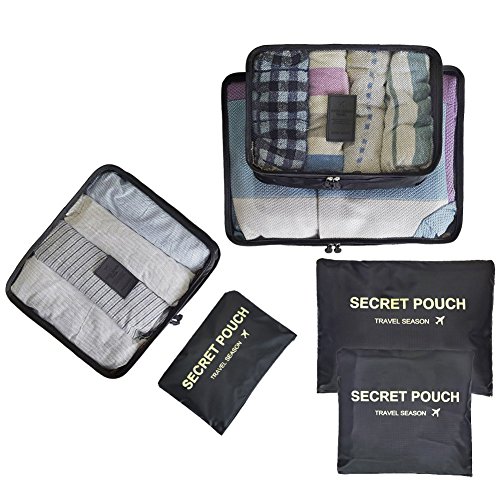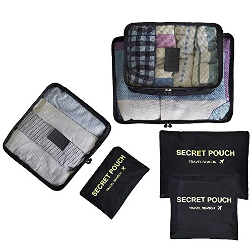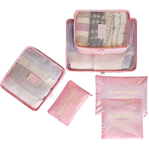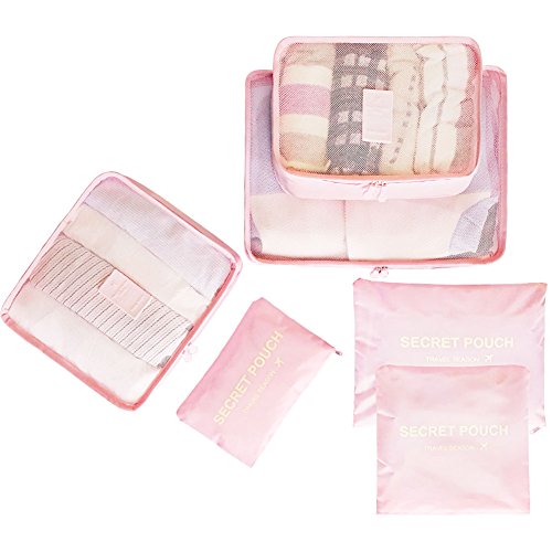 toiletry kits, pantyhose, delicates, small purses, and even camera accessories. CapacitySuggestion --3 Packing Cubes(mesh bag) and 3 Pouches Luggage Organizers(secret pouch) - Large mesh bag(15.5x11.5x5 inches) actual capacity: