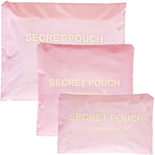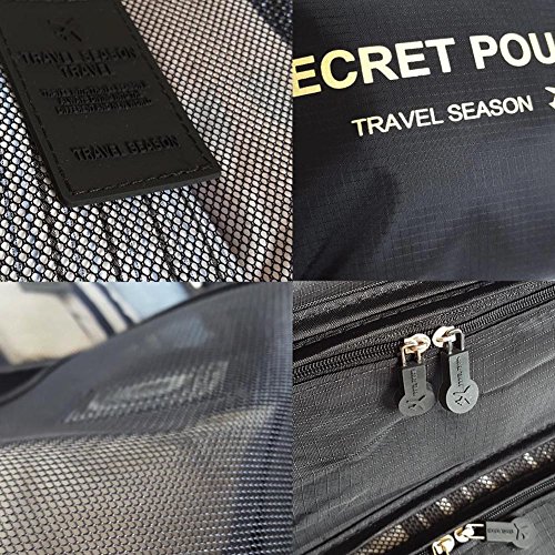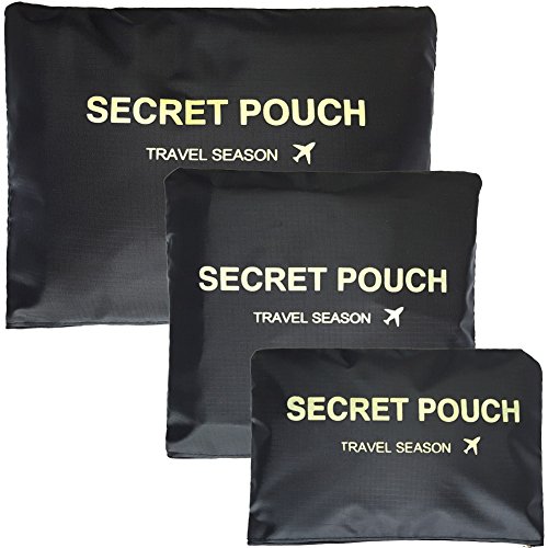 4 long sleeved T-shirt 2 Short sleeved T-shirt or 5 underwear 5 bras. - Large Secret Pouch(13x10.5 inches) actual capacity: