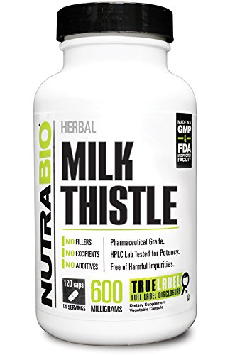 NutraBio Milk Thistle Liver Support. Standardized to 80% Silymarin. 300 mg, 120 Vegetable Capsules, 3rd-Party HPLC Lab Tested.
