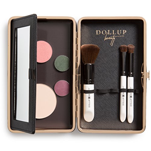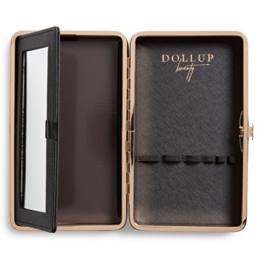 Dollup Case Makeup Essentials Clutch Organizer (Jetset Black) - Features Empty Customizable Magnetic Palette, Foldaway Vanity Mirror, and Elastic Holding Bands for cosmetic storage