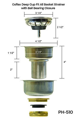 Coflex Deep Cup Fit All Sink Basket Strainer- Easy Press Basket with Ball Bearing closure