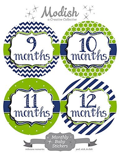 12 Monthly Baby Stickers, Boy, Nautical, Navy, Blue, Lime Green, Green, Baby Belly Stickers, Baby Month Stickers, First Year Stickers Months 1-12,...