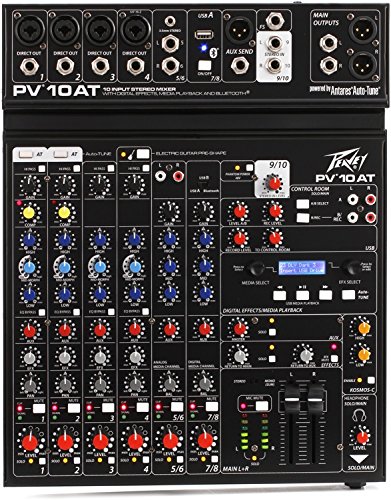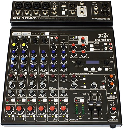 Studio : Peavey Electronics Publisher : Peavey Electronics Binding : Electronics Product Description The all-new PV 10 AT mixers come equipped with Antares Auto-Tune pitch correction, a technology that can literally help anyone sing in key and is used on professional recordings and live performances throughout the world. This technology is incorporated directly into a complete and powerful portable mixing solution, ensuring that your audience will experience perfectly tuned vocals to complement the crystal-clear audio of the mixer. Features such as Bluetooth allow seamless connection to almost any "smart" device. Multiple direct outs per channel allow easy connection to most DAW interfaces for recording. In addition, these mixers can stream audio directly to a PC. MP3 playback is also available via USB A port and LCD display. With a slim, low-profile design, PV AT series mixers are ideal in small to mid-size venues. Key features include 2 channels of Antares Auto-Tune, 4 channels of reference-quality mic preamps, 4 direct outputs for recording, Bluetooth wireless input, and built-in digital effects with LCD display. These all-new mixers will provide years of hassle-free operation. 0