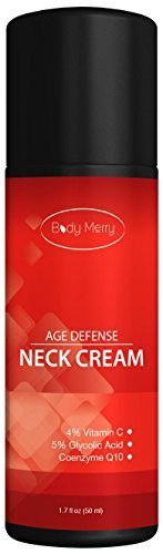 -. Binding : Misc. -. Brand : Body Merry -. EAN : 0642337770944 -. Feature : Lift, firm and hydrate the delicate skin of your neck and chest with Body Merry's Age Defense Neck Cream - a powerful formula that adds moisture while firming and smoothing your décolleté. / Helps to improve the suppleness and elasticity of your neck, face and chest with vitamins, antioxidants and AHAs. Made with 4% Vitamin C, 5% Glycolic Acid, Lactic Acid, Coenzyme Q10 (CoQ10) and natural ingredients like Plant Derived Hyaluronic Acid, Propolis, Royal Jelly, Cocoa Butter, Jojoba Oil, Green Tea, Avocado Oil, Licorice, Lemongrass and Rosehip Oil, to name just a few. / We left the perfumes on the shelf and out of our neck cream. Made with no fragrances or harsh parabens, sulphates or phthalates. / Start using Body Merry's neck cream daily and regenerate your neck and chest. If regeneration does not occur or you're not 100% satisfied, Body Merry offers a 90 day MANUFACTURER GUARANTEE on all its products. Just contact us and we'll refund your order. You get to keep the bottle. / We prefer to cuddle with animals so none of Body Merry's products are tested on them. Our products are cruelty free and made right here in the USA in an FDA registered and GMP compliant facility. -. MPN : PT-USBY-7S7Y -. NumberOfItems : 100 -. PackageQuantity : 1 -. PartNumber : PT-USBY-7S7Y -. ProductGroup : Beauty -. ProductTypeName : BEAUTY -. Title : Neck Firming Cream - Best Daily Moisturizer For Wrinkles and Sagging Skin - Tightens & Smoothes Chest - With Vitamin C + Glycolic Acid + Lactic Acid + CoenzymeQ10 - 1.7 oz - By Body Merry -. UPC : 642337770944