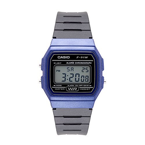 Brand, Seller, or Collection Name:Casio Model number:F-91WM-2ACF Part Number:F-91WM-2ACF Item Shape:rectangle Dial window material type:Mineral Display Type:Digital Clasp:Buckle Case material:Plastic Case diameter:35.5 millimeters Case Thickness:8.38 millimeters Band Material:Resin Band length:Men's Standard Band width:19.25 millimeters Band Color:Black Dial color:Grey Bezel material:Plastic Bezel function:Stationary Calendar:Day and date Special features:N/A Item weight:22.68 Grams Movement:Quartz