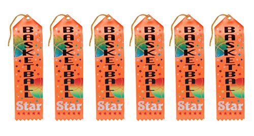Beistle AR070 Basketball Star Award Ribbon, 2-Inch by 8-Inch, 6-Pack