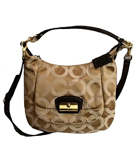 -. Brand : Coach -. Department : womens -. EAN : 0886382106161 -. Feature : Op Art sateen fabric with leather trim / Inside zip pocket and multifunction slip pockets / Approximate 12.5" (L) x 9" (H) x 3" (W), detachable longer strap included for shoulder or crossbody wear / Zip top closure, fabric lining, outside front flap pocket with magnetic clasp / Creed serial number inside the bag -. PackageQuantity : 1 -. ProductGroup : Shoes -. ProductTypeName : HANDBAG -. Title : Coach Kristin Signature Op Art Sateen Hobo Shoulder Bag Purse 19331 Khaki Mahogany -. UPC : 886382106161