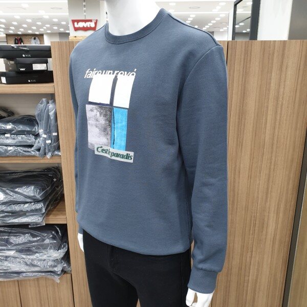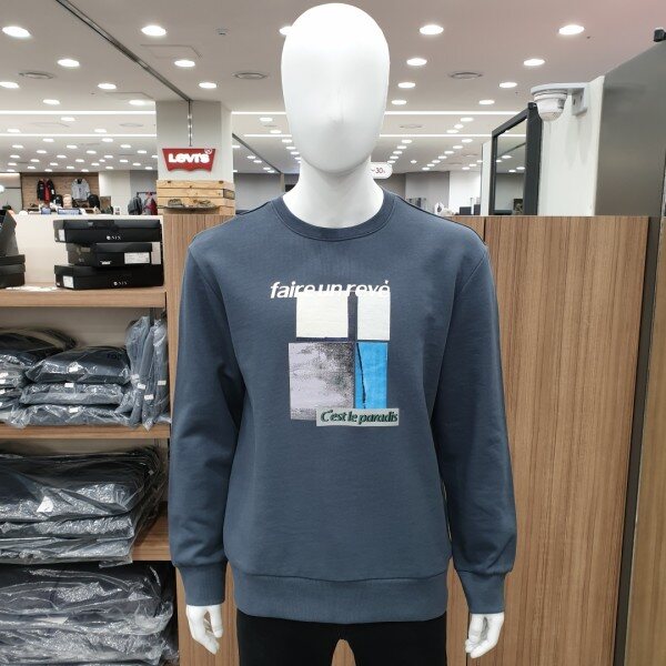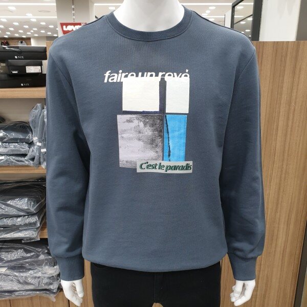 NIX 2019년 봄 신상 입니다. C/P 삼단쭈리 베이직핏. 프랑스 느낌의 모티브와 프랑스어를 활용한 디자인의 맨투맨 입니다. (의미: 희망을품다, 낙원을 꿈꾸다) 마네킹 100size 착용