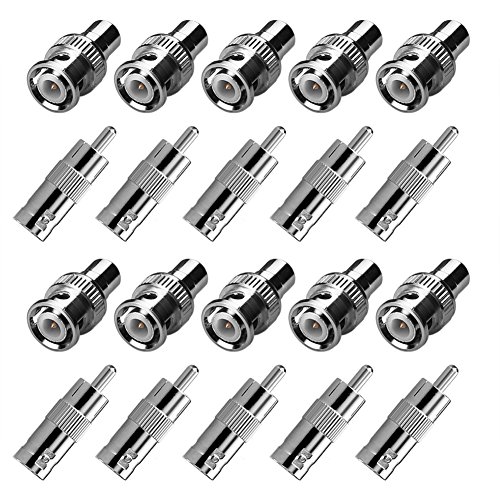 SIENOC 10 Packs BNC Male Plug to RCA Female Jack and 10 Packs BNC Female Socket Plug to RCA Male Adapter Connector (20x BNC male/Female to RCA female/Male Adapter)
