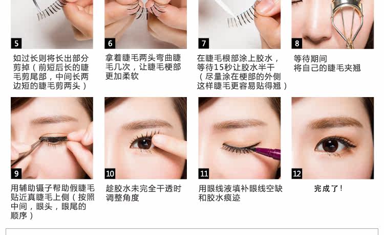 假睫毛 超自然逼真裸妆纤长交叉短款 柔软型3D立体假睫毛3对装