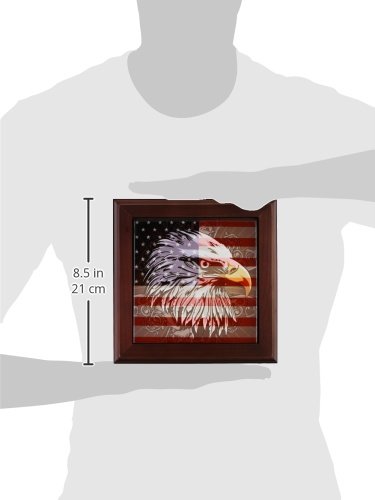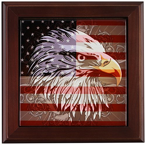 3dRose ft_116181_1 Ornate Patriotic Bald Eagle and USA American Flag Pride Great for Fourth of July Independence Day Framed Tile, 8 by 8"