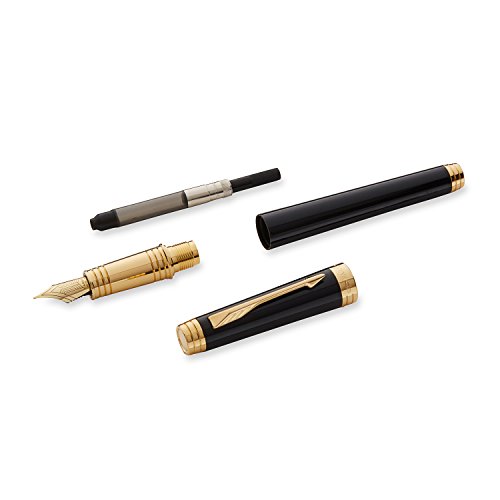 -. Binding : Office Product -. Brand : Parker -. Color : Black -. EAN : 3501170887813 -. Feature : Comfortable, precise and hand-assembled, Parker Premier offers an exclusive fine writing experience. / Modern tubular shape and monochrome design make this pen a contemporary yet prestigious choice. / Solid gold nib covered with ruthenium is hand-polished and manually assembled to provide the ultimate in writing comfort and high-precision lines. / Successive coats of deep black glossy lacquer for a rich and deep brilliance. -. Label : Sanford -. Manufacturer : Sanford -. Model : S0887810 -. MPN : S0887810 -. NumberOfItems : 1 -. PackageQuantity : 1 -. PartNumber : S0887810 -. ProductGroup : Office Product -. ProductTypeName : OFFICE_PRODUCTS -. PublicationDate : 2012-05-23 -. Publisher : Sanford -. Size : Fine -. Studio : Sanford -. Title : Parker Premier Fountain Pen, Fine Point, Deep Black Lacquer with Gold Trim (S0887810) -. Warranty : 2 Year International Warranty Comfortable, precise and hand-assembled, Parker Premier offers an exclusive fine writing experience. Modern tubular shape and monochrome design make this pen a contemporary yet prestigious choice. Solid gold nib covered with ruthenium is hand-polished and manually assembled to provide the ultimate in writing comfort and high-precision lines. Successive coats of deep black glossy lacquer for a rich and deep brilliance. Limited warranty guarantees product for 2 years from date of original purchase against defects in materials or workmanship.
