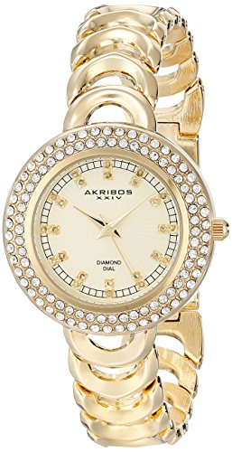 -. Title : Akribos XXIV Women's AK804YG Gold-Tone Metal Watch with Link Bracelet