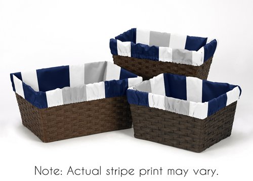 Sweet Jojo Designs 3-Piece Fits Most Basket Liners for Navy and Gray Stripe Bedding Sets