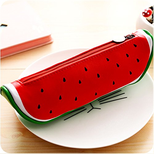 Funnylive Series of Fruit Pencil Case Creative PU Pencil Bags New Fruit Style Zipper Pencil Case (Red)