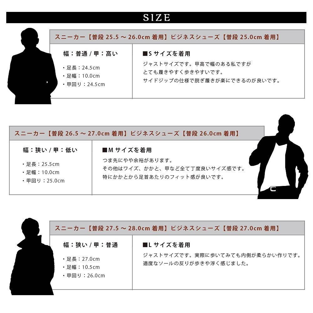 | サイズ(約:cm) | S (25.0cm-25.5cm) M (26.0cm-26.5cm) L (27.0cm-27.5cm) |
