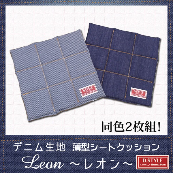 【商品名】クッション シート 椅子用 綿100% 国産 デニム ストライプ柄 『レオン』 ヒッコリー 約43×43cm 2枚組