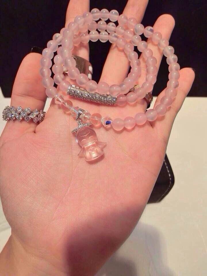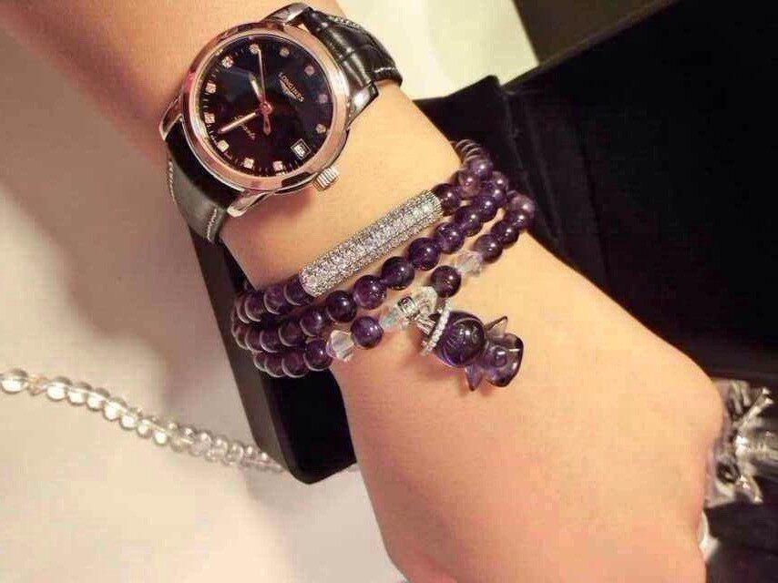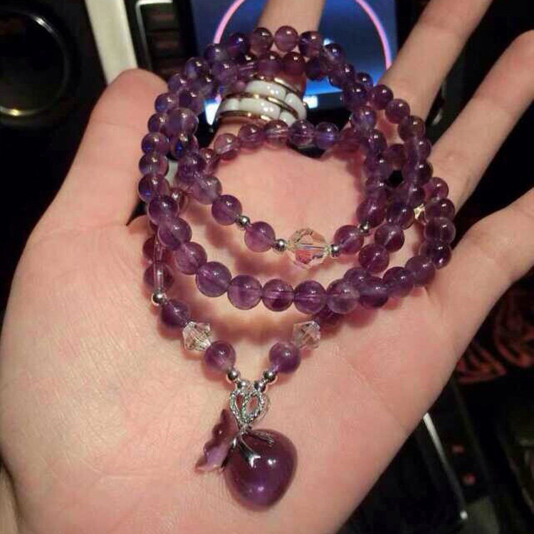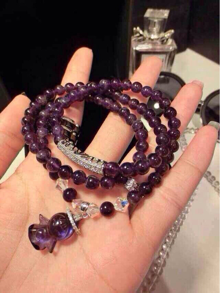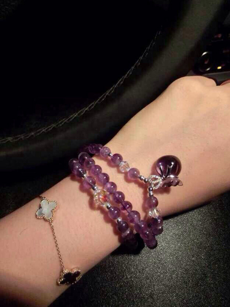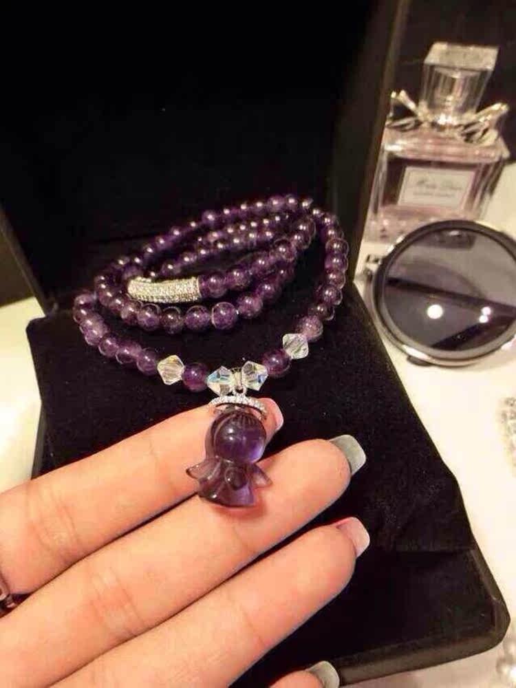 纯天然粉晶紫水晶白水晶手链手串女多层多圈招桃花天使吊坠饰