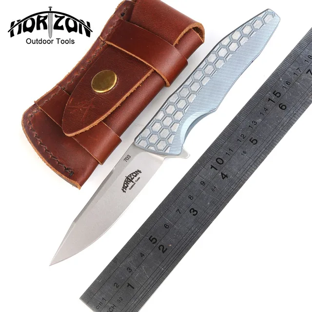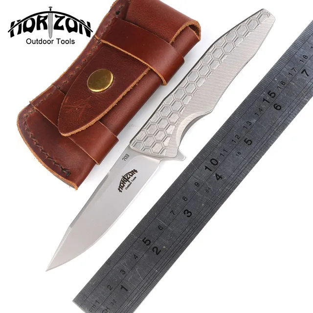 | [해외] Korizon 원래 703 야외 기어 플리퍼 접는 나이프 티타늄 핸들 S35VN 블레이드 전술 사냥 캠프 생존 나이프 EDC 도구 |