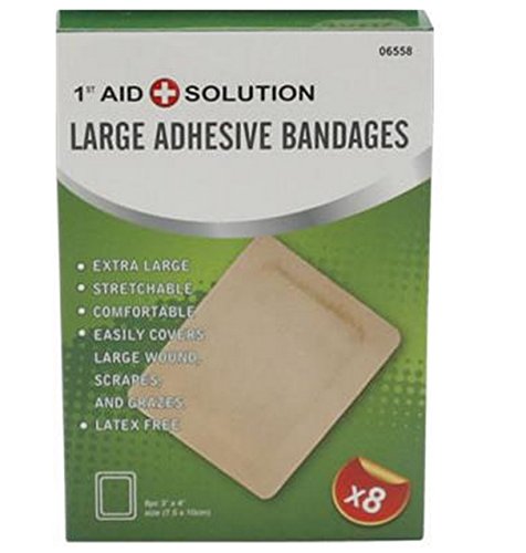 -. Title : 8pc Jumbo Adhesive Bandages 3" X 4" Inches Extra Large Comfortable Travel Work Sports First Aid Knee Elbow