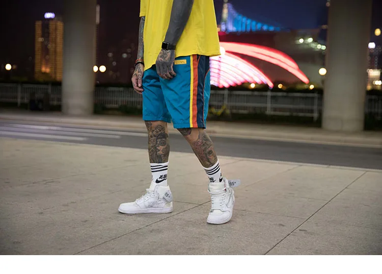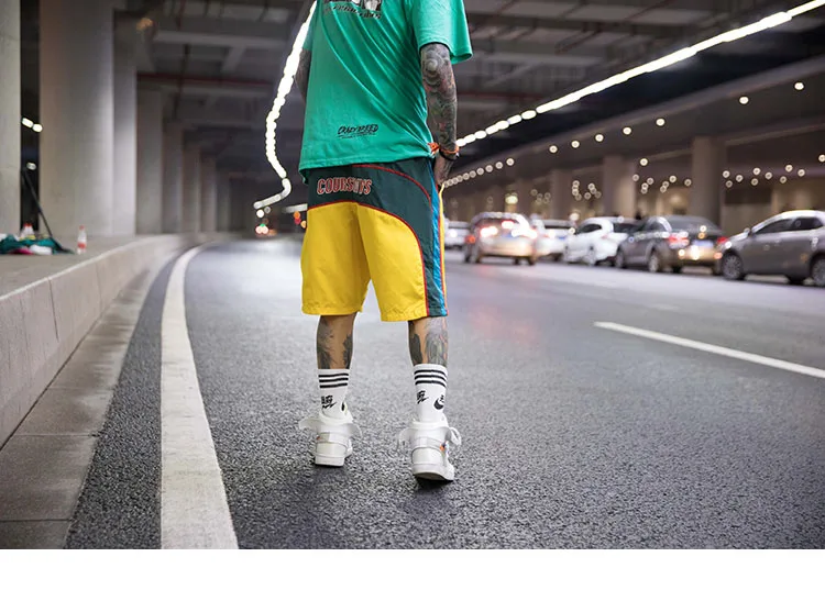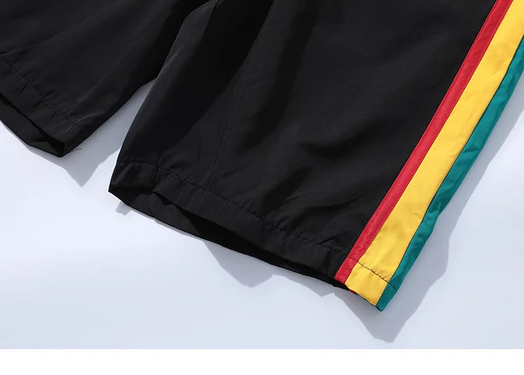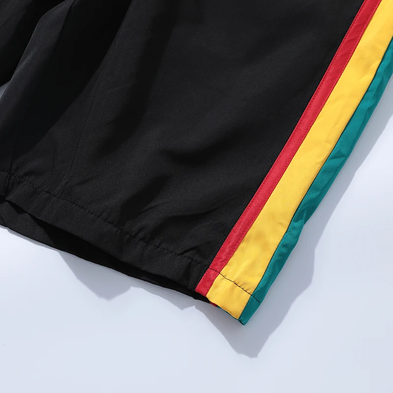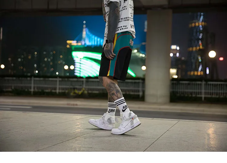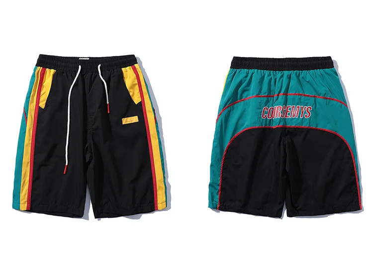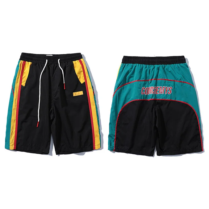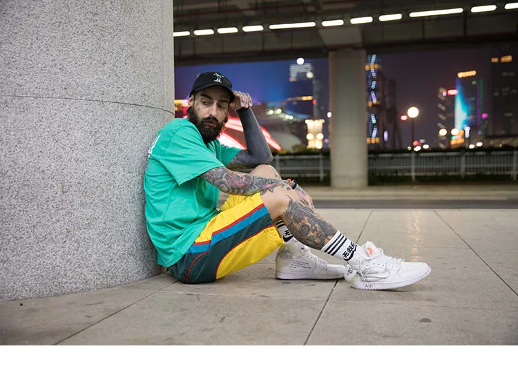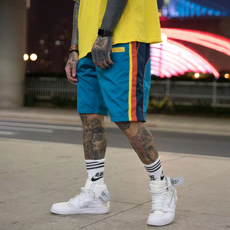 Item:Mens Hip Hop Baggy Short Colorful Patchwork Side Striped Short