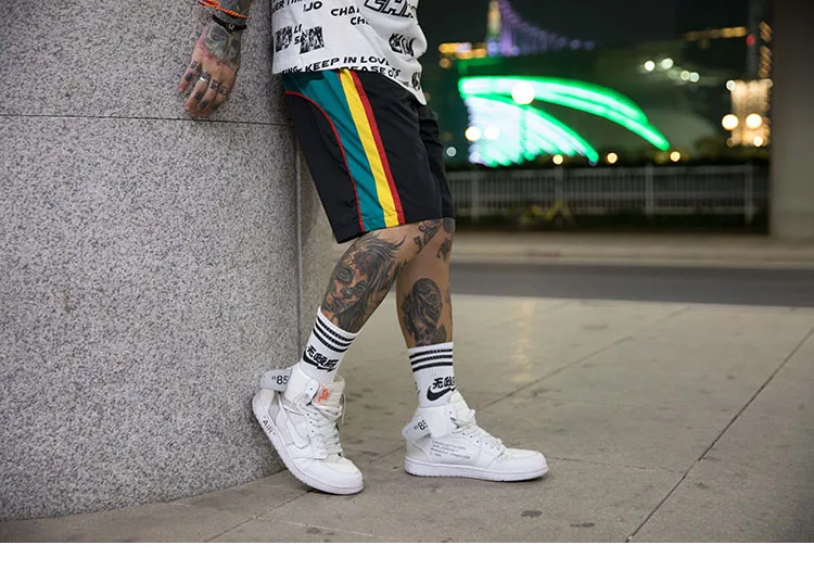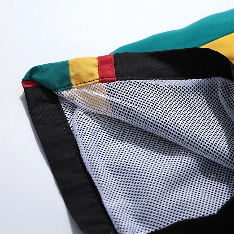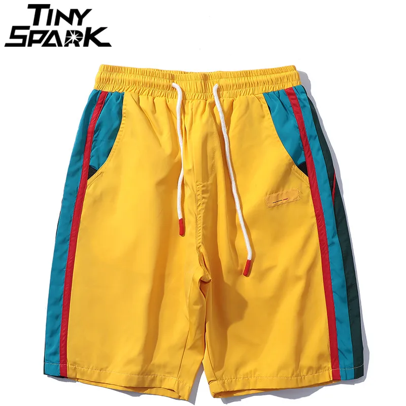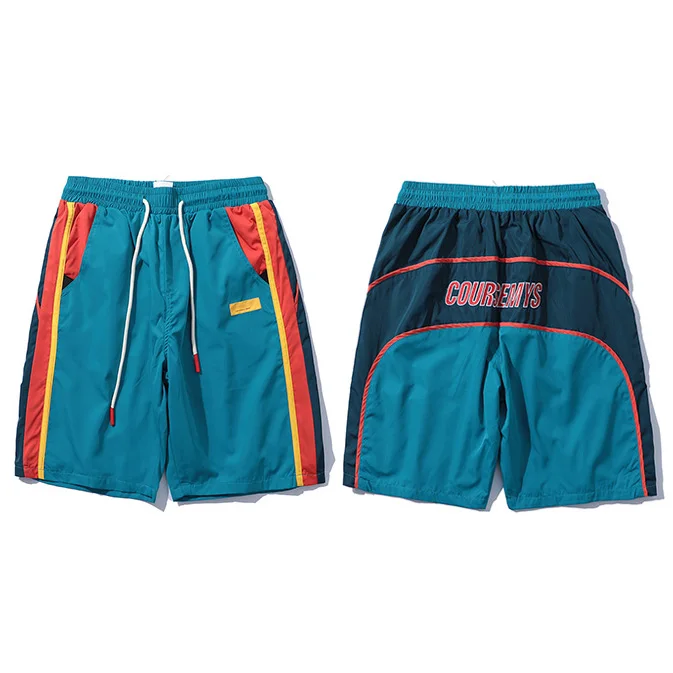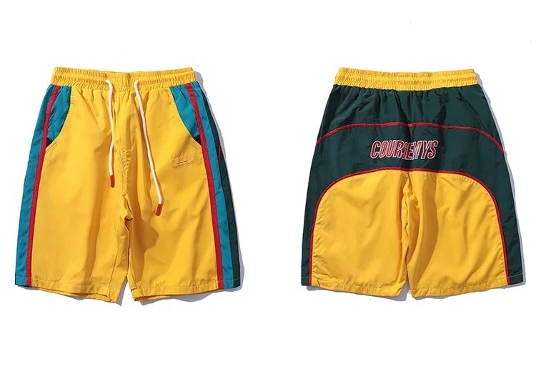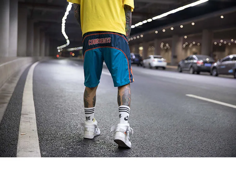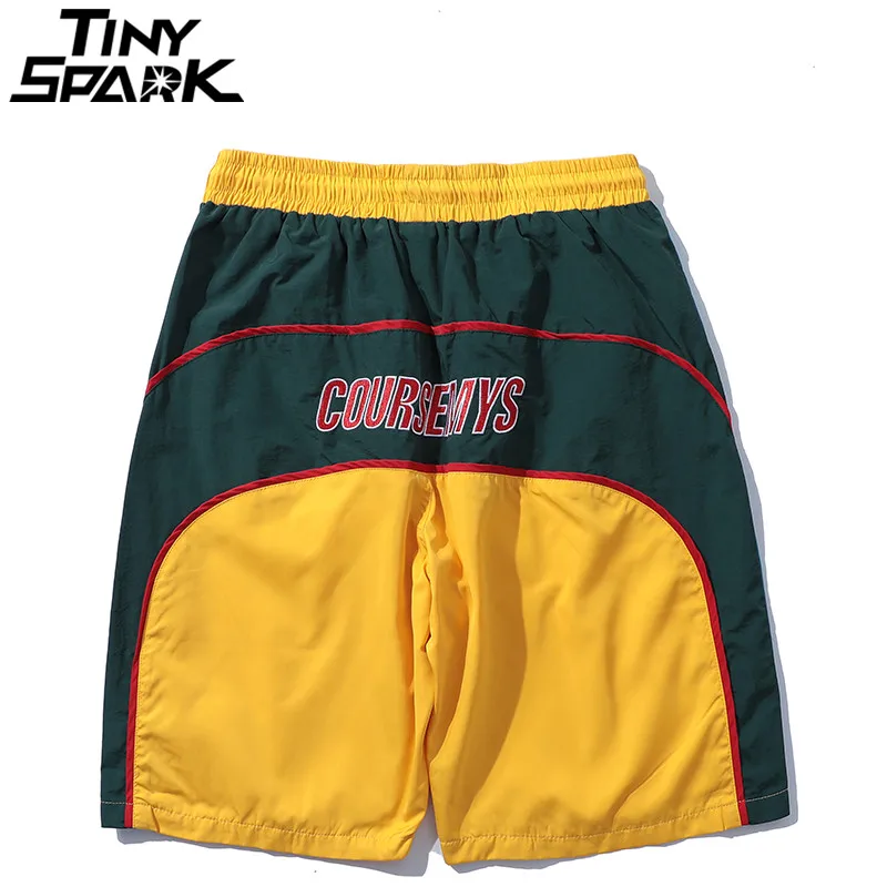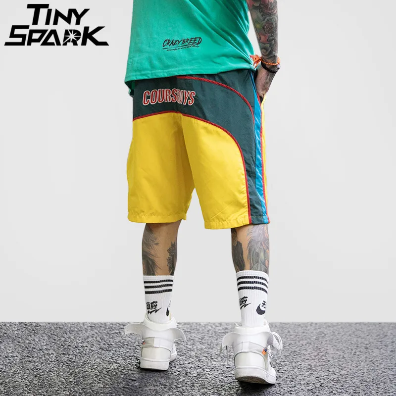 Item:Mens Hip Hop Baggy Short Colorful Patchwork Side Striped Short