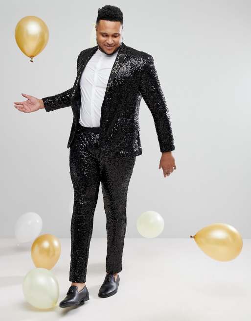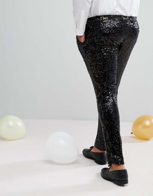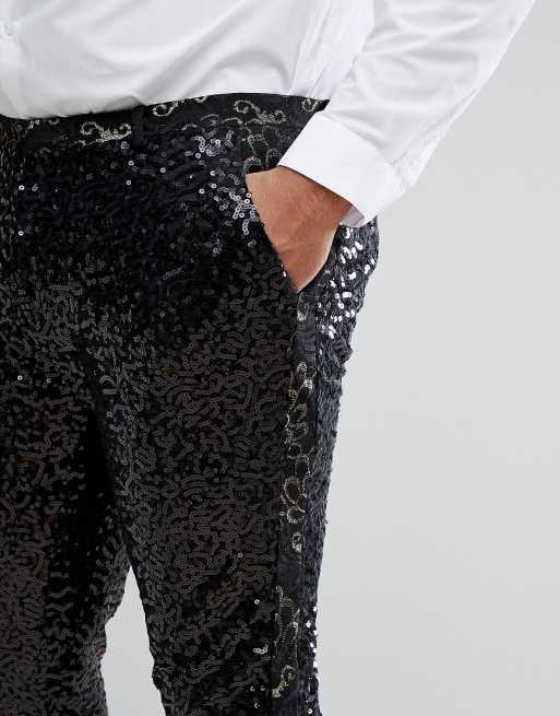 ASOS PLUS Super Skinny Pants in Black Sequins With Gold Trims