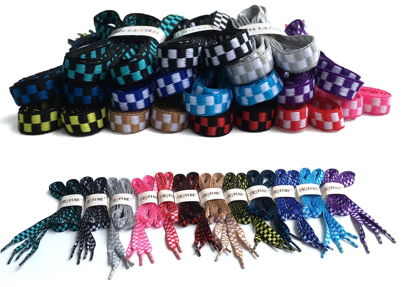 Packing:2 Pair(4 Laces)Flat Rainbow Plaids Shoelaces Per Order