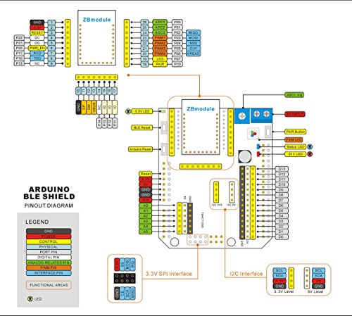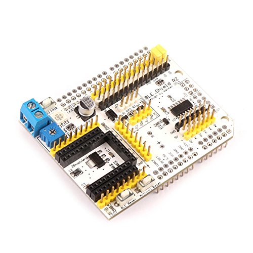 -. Binding : Electronics -. Brand : EleDuino -. EAN : 0701017465553 -. Feature : Compatible devices: For iPhone 5, iPhone 4S, iPad Mini, The New iPad (3,4) or iPod touch (5) , iOS version 5.1.1 or higher. Recommended version uses iOS 6.1. (If for Android systems requires 4.3 supports Bluetooth 4.0 protocol ) / Hardware needs: 1, Arduino Uno R3, Arduino Leonardo R3, Arduino MEGA R3; 2, BLE Shield; 3, iPhone 5, iPhone 4S, iPad Mini, The New iPad (3,4) or iPod touch (5) / with I2C interface level conversion, you can use the 5V level 3.3V level I2C interfaces to connect various types of sensors / leads all the IO port ZBmodule module, the module can easily debug ZBmodule / and with a full-color LED and adjustable resistance, test ZBmodule module comes with PWM outputs and ADC sampling. -. Label : EleDuino -. Manufacturer : EleDuino -. PackageQuantity : 2 -. ProductGroup : PC Accessory -. ProductTypeName : NETWORKING_DEVICE -. Publisher : EleDuino -. Studio : EleDuino -. Title : Arduino Bluetooth 4.0 BLE Shield Expansion Board +4.0 BLE module -. UPC : 701017465553
