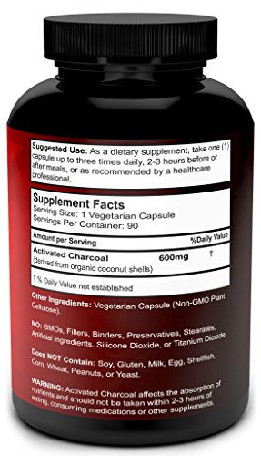 HIGHEST QUALITY INGREDIENTS - Our formula is made up of only pure, organic, steam activated, ultra fine coconut shell charcoal with no harmful additives. Don't put other nasty ingredients into your body. Our organic activated charcoal capsules are GMO free, soy free, gluten free and have no preservatives, stearates, silicone dioxide or artificial ingredients. A pure, vegan friendly formula.