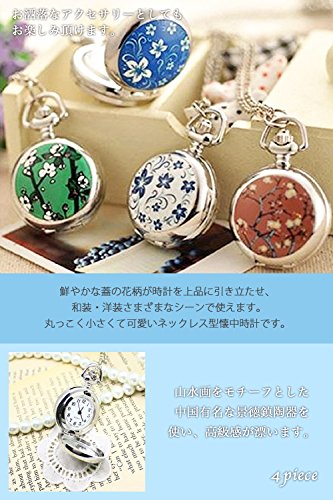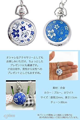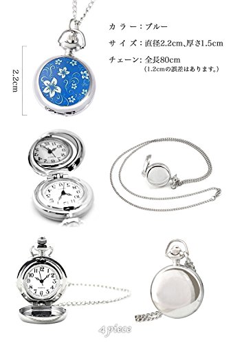 원본상품명:(よんピ?ス)4 piece ?中時計 ネックレス 時計 小さな 花柄 ペンダント ウォッチ ブル? KH0021