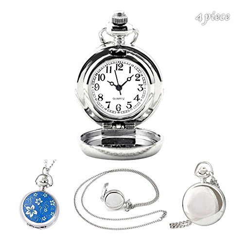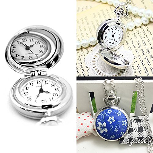 (불러 피스)4 piece 회중 시계 목걸이 시계 작음이 꽃무늬 펜던트 워치 KH0021