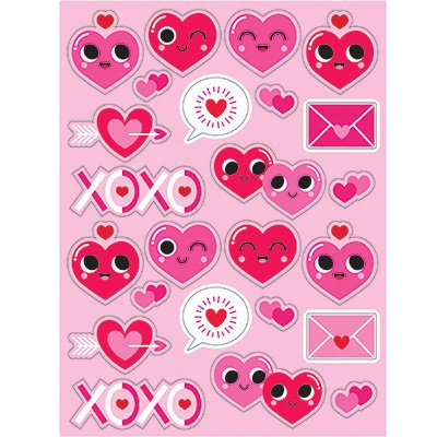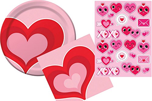 Valentines Day Party Supplies Pack - Hearts and Emojis - Bundle Includes: 8 Dessert Plates, 16 Beverage Napkins, and 96 Stickers, for 8 Guests