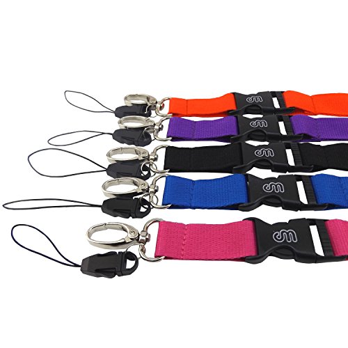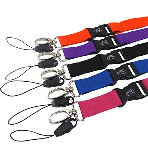 Office Lanyard, Wisdompro 5pcs 23" Polyester Neck Strap with Oval Clasp & Detachable Buckle for Phones, Camera, iPod, USB, Key, Keychain, ID Name Tag Badge Holder-(Purple Red Hotpink Blue Black)