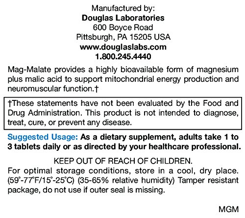 Mag-Malate tablets, provided by Douglas Laboratories®, provide magnesium and malic acid, two key nutrients involved in energy production. Mag-Malate provides magnesium as an Albion glycine/lysine amino acid chelate, which has superior absorption and is highly tolerated.