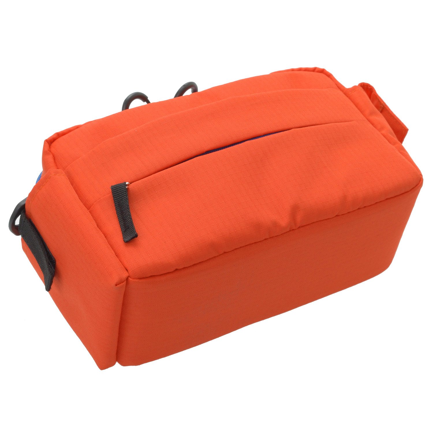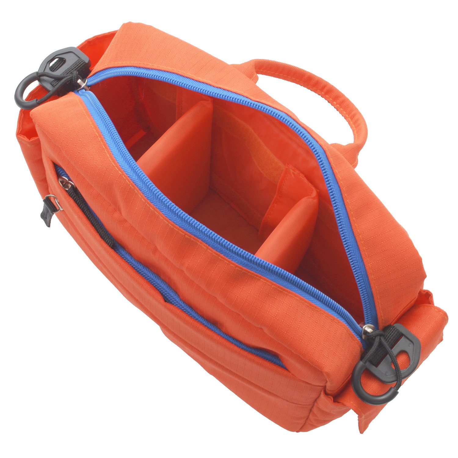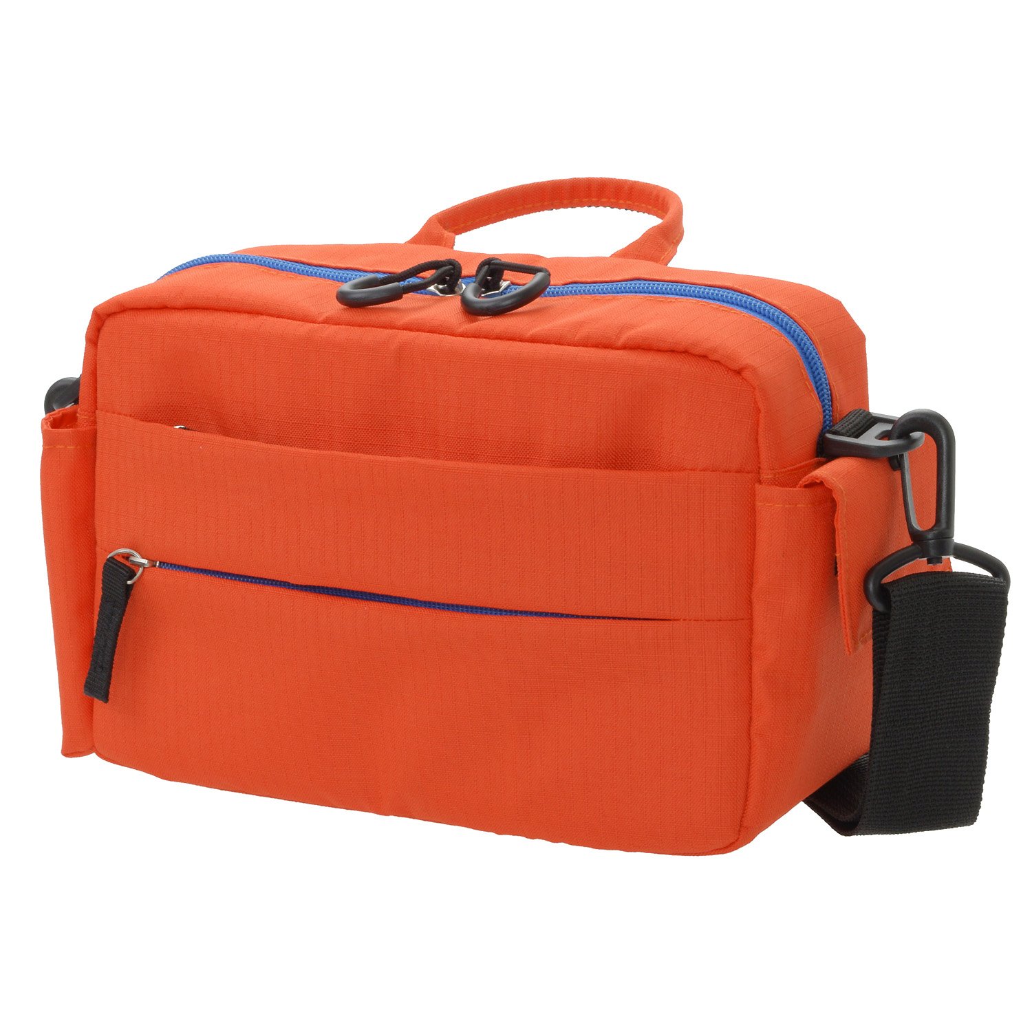 Nikon Coolpix P610 fits perfectly, and furthermore small items etc are included because there is room in the inside. Besides P610, I also walk in with a compact digital camera. Since there are two partitions of Velcro in the bag, you can change the partition inside the bag to your liking. I mainly use it as a waist bag or a shoulder bag, but it is just too big and not too small, just right size. The bag itself is lightweight, but it does not collapse as it is solidly made. The combination of bright orange and blue is cute, it carries with every shooting, but the tension goes up. Then, although the large zipper string is attached to the fastener of the main bag part, this is a very excellent one. You can take out the camera quickly and you will not be caught up in opening the fastener.