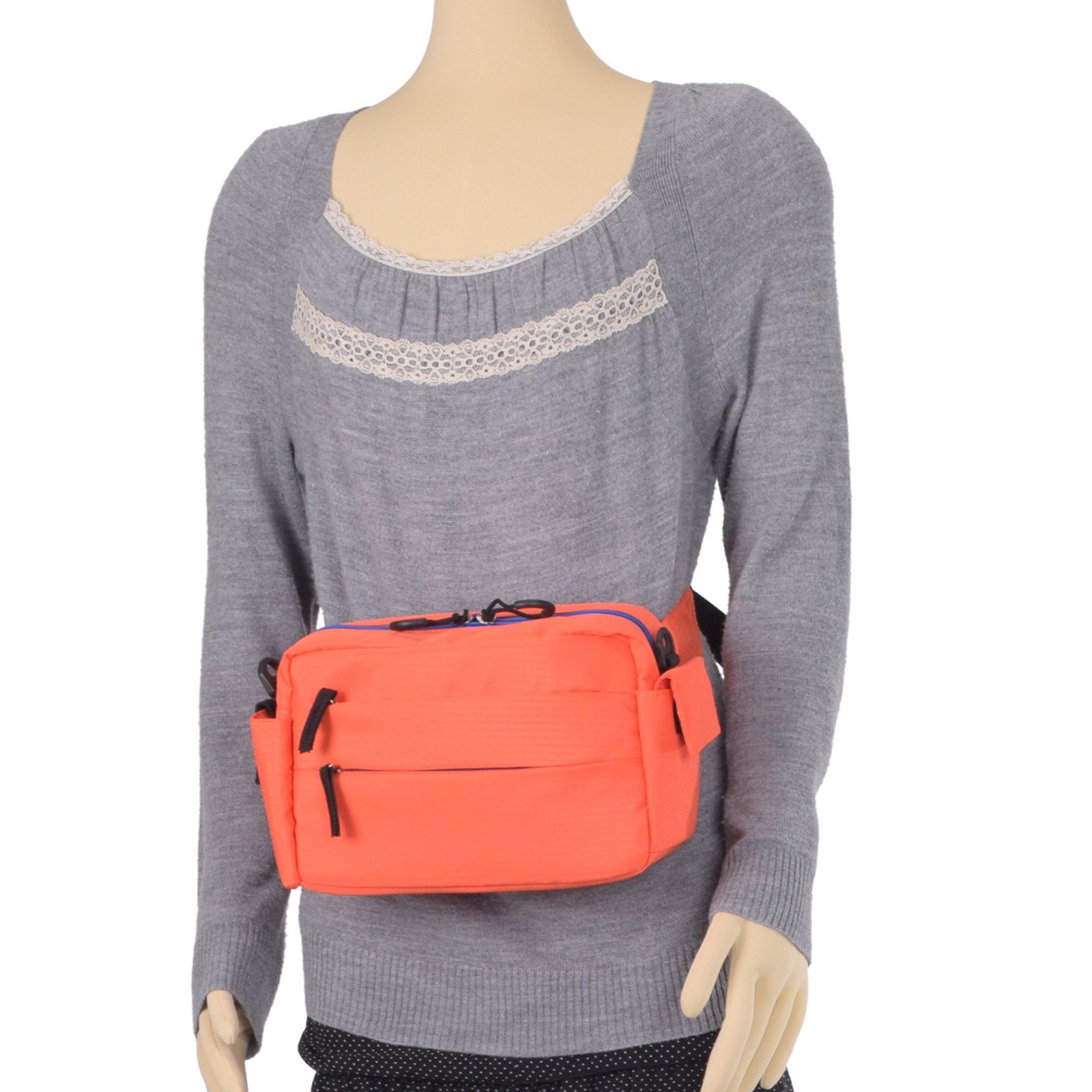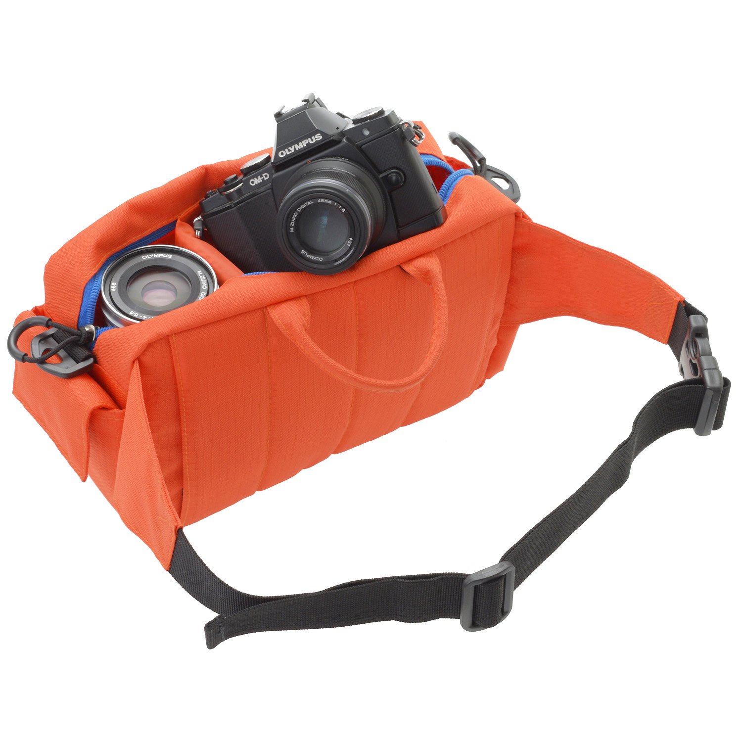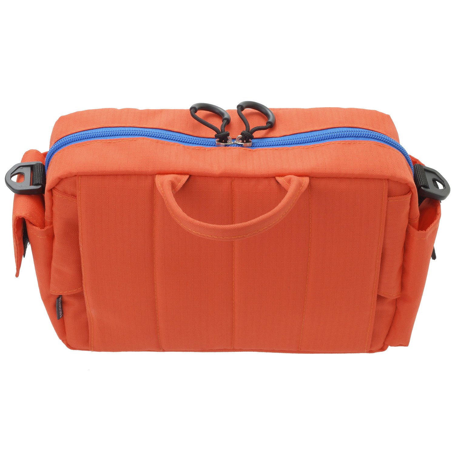 Nikon Coolpix P610 fits perfectly, and furthermore small items etc are included because there is room in the inside. Besides P610, I also walk in with a compact digital camera. Since there are two partitions of Velcro in the bag, you can change the partition inside the bag to your liking. I mainly use it as a waist bag or a shoulder bag, but it is just too big and not too small, just right size. The bag itself is lightweight, but it does not collapse as it is solidly made. The combination of bright orange and blue is cute, it carries with every shooting, but the tension goes up. Then, although the large zipper string is attached to the fastener of the main bag part, this is a very excellent one. You can take out the camera quickly and you will not be caught up in opening the fastener.