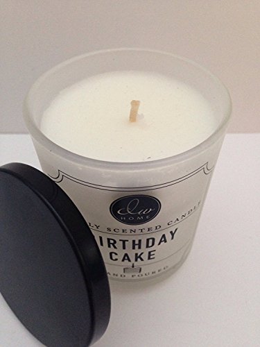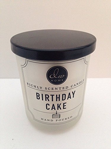 Convenient Travel Size "BIRTHDAY CAKE" Vanilla Scented Candle in Frosted White Jar / Black Lid