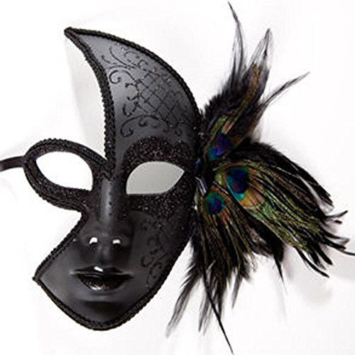 Black Venetian Feather Face Mask