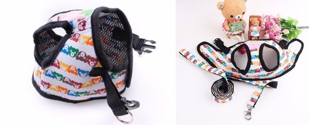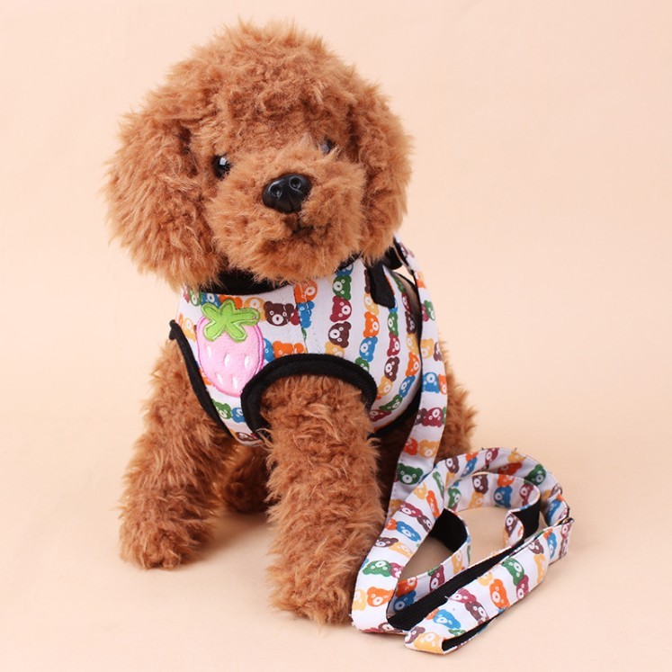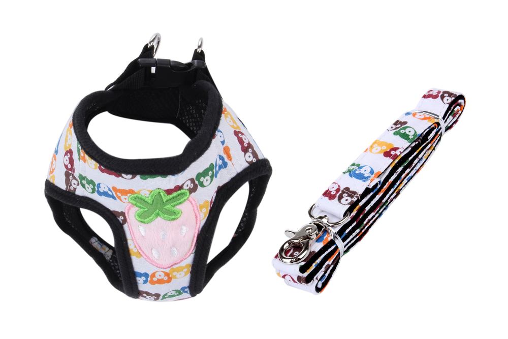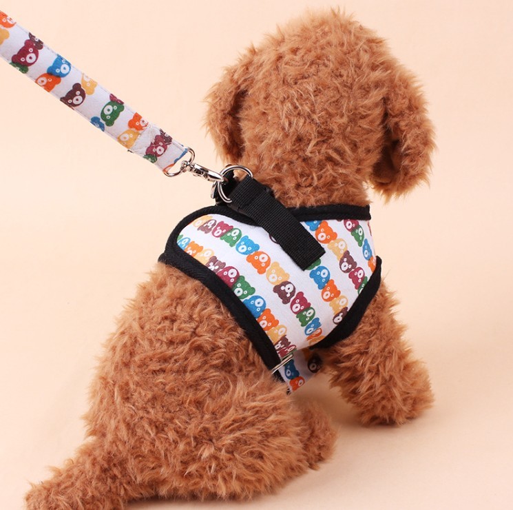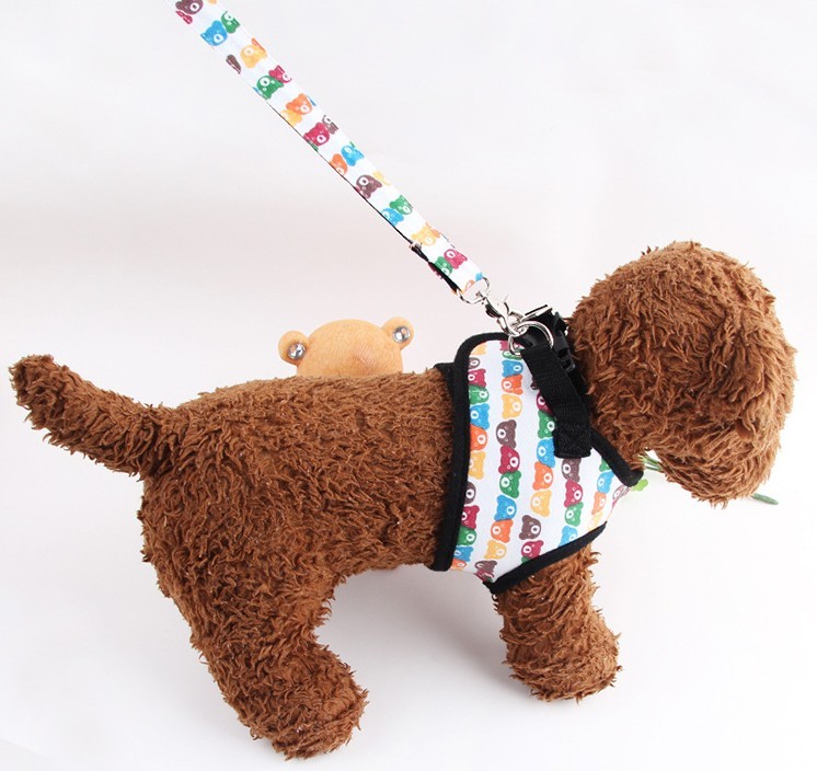 小型犬 カラフル くま柄 リード & ハーネス セット 散歩 胸あて ソフト 軽量 クッションメッシュ 首輪 ペット ctr-c81【1~2日発送】